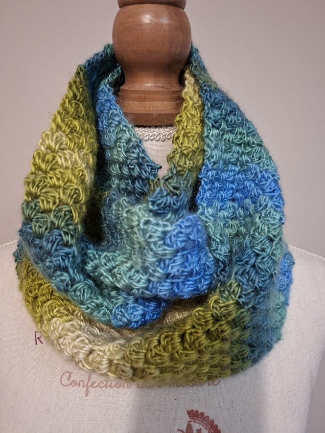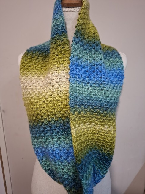 Foulard, double snood bien chaud réalisé au crochet. Bien grand pour faire 2 fois le tour du cou.