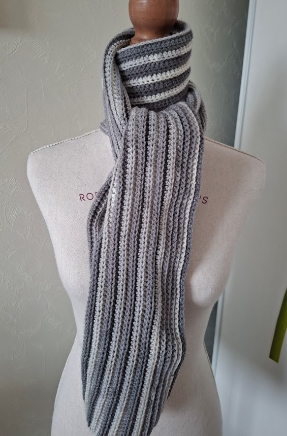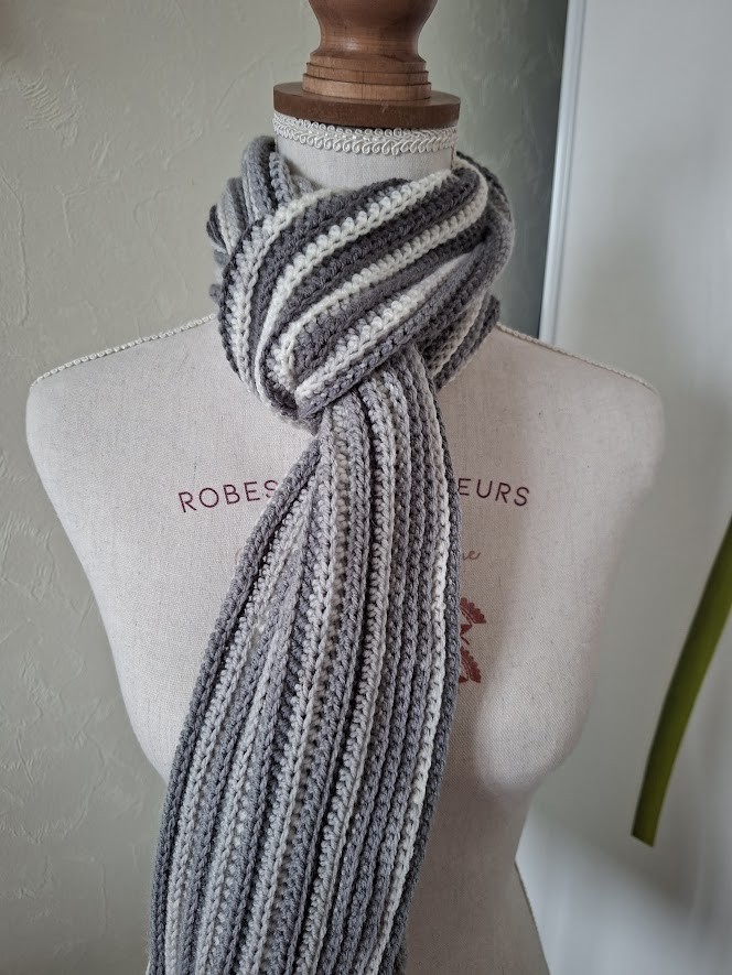 Joli foulard gris qui vous tiendra bien au chaud en hiver.